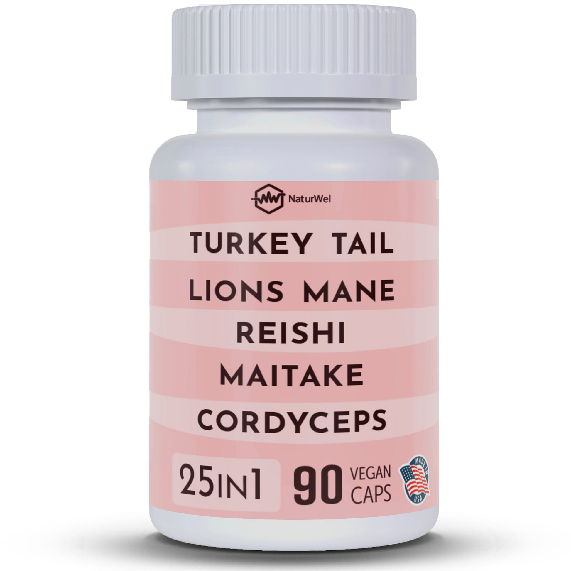 NaturShrooms - 25 in 1 with Turkey Tail,Lions Mane,Reishi & Mushroom Blend