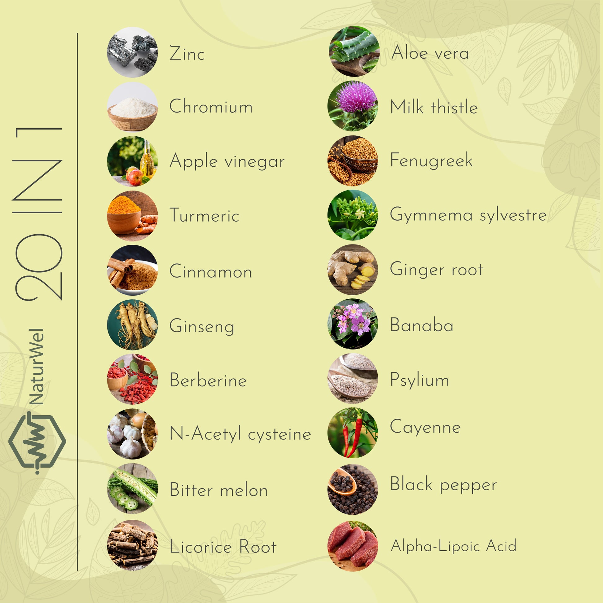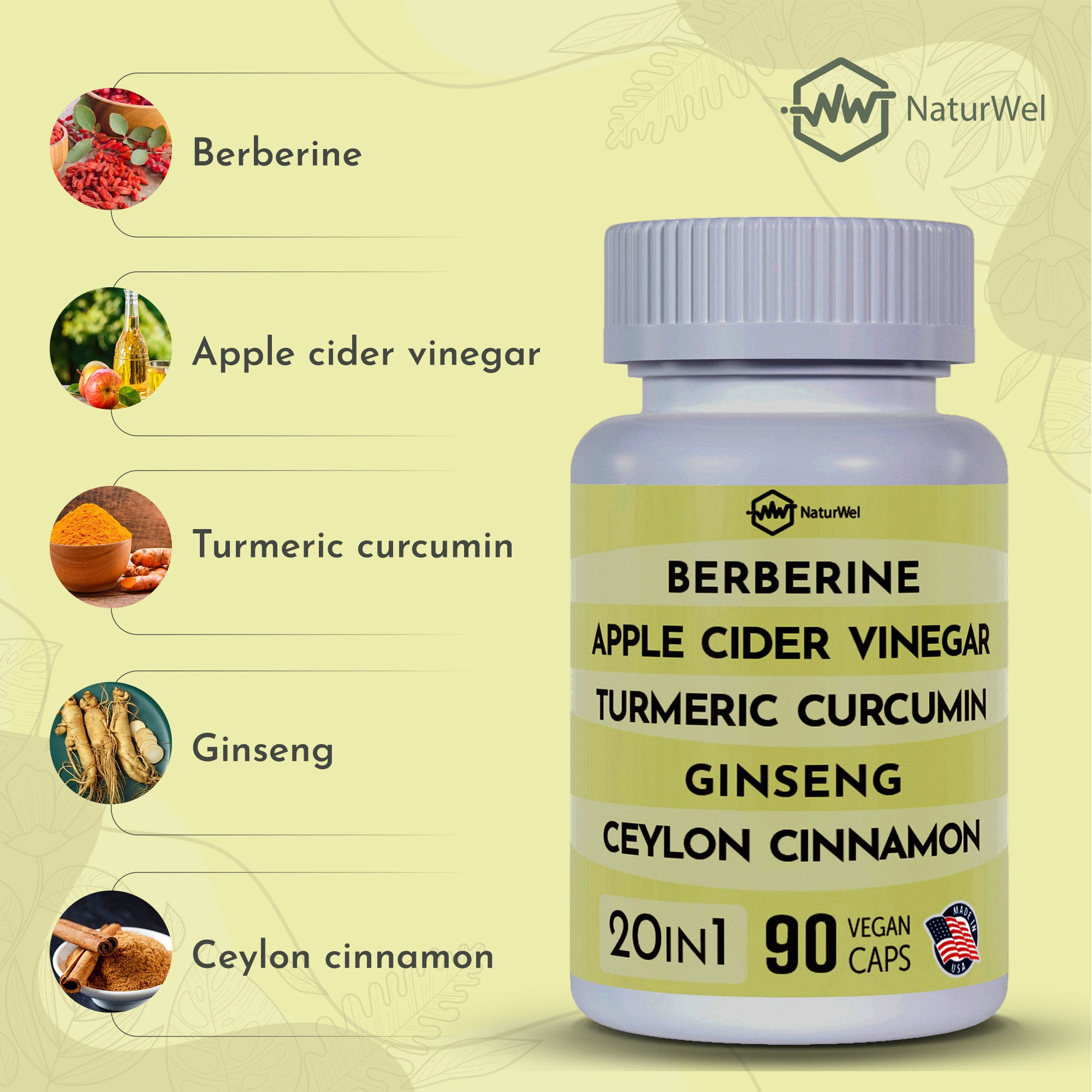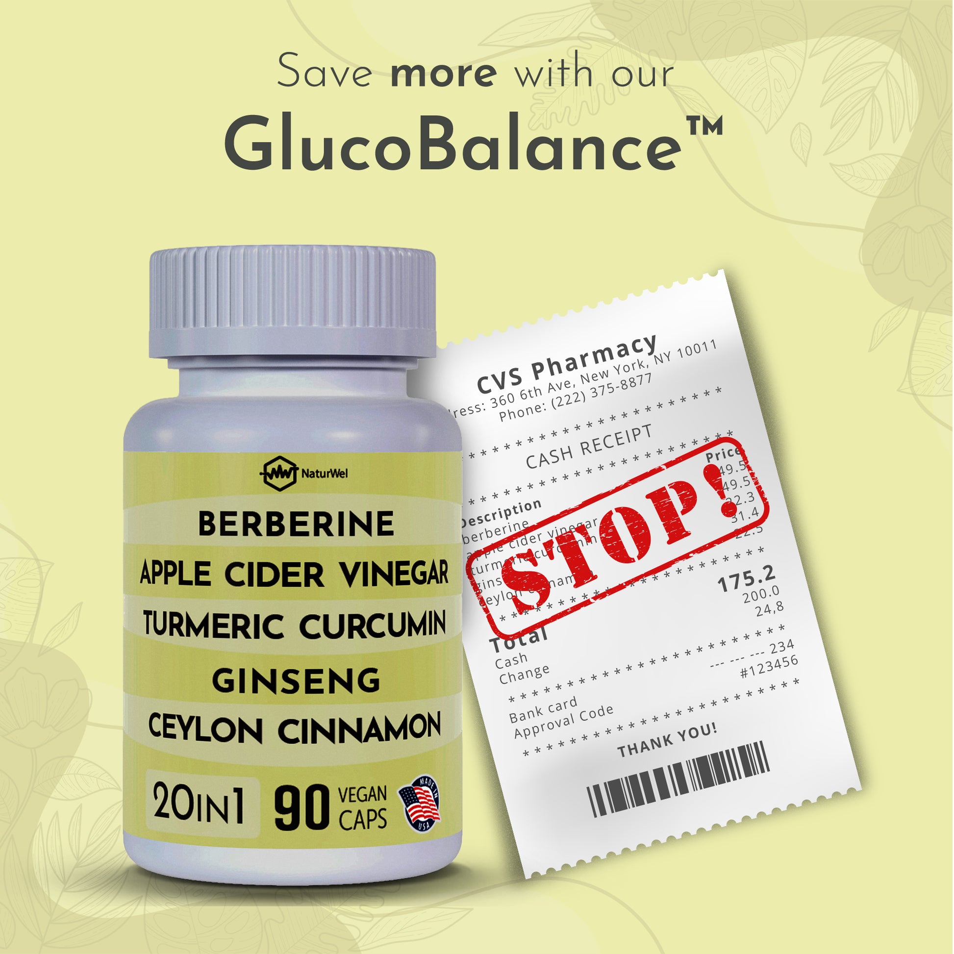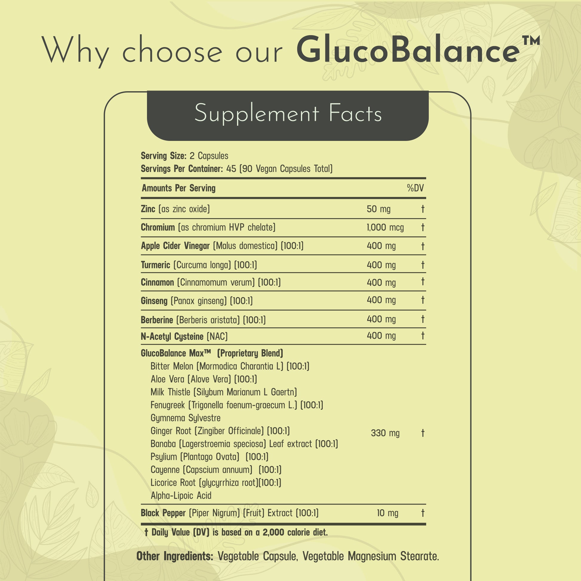 GlucoBalance - 20 in 1 Blend with Ceylon Cinnamon, Ginseng, Berberine, Turmeric, Apple Cider Vinegar - 90 Capsules