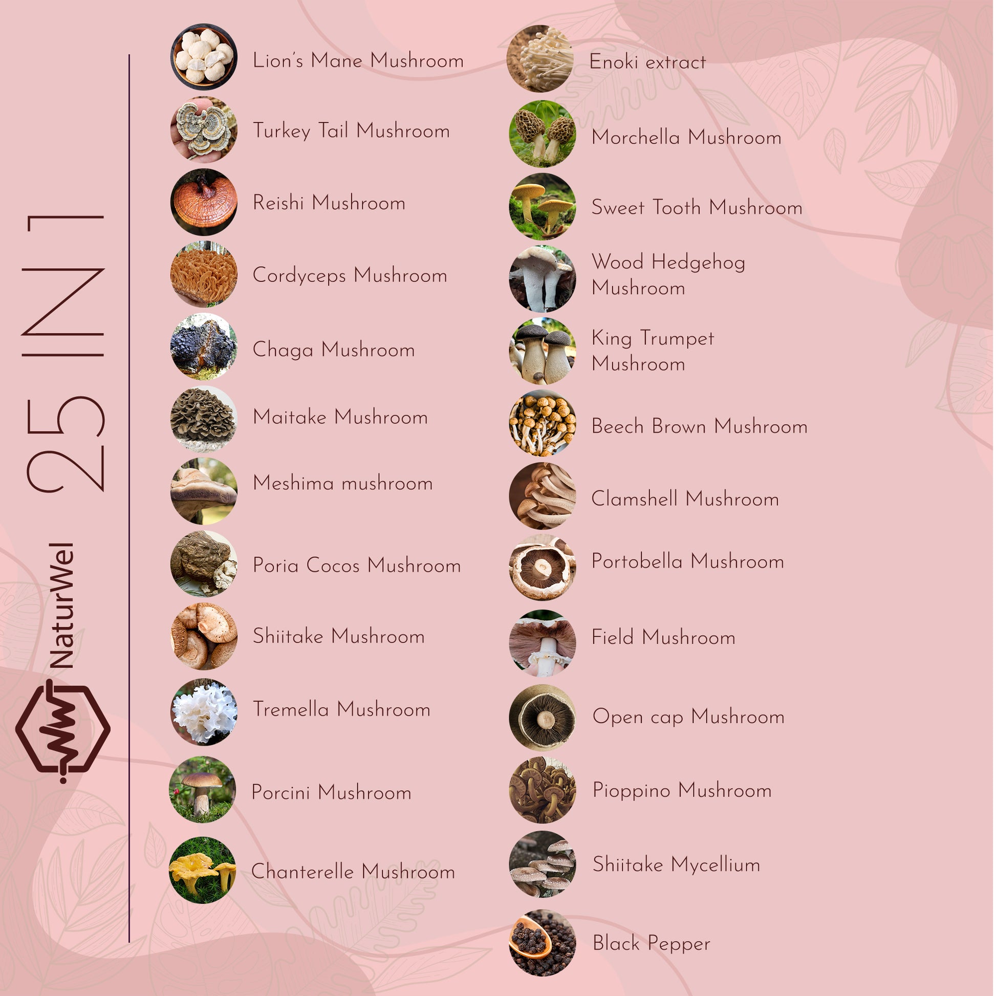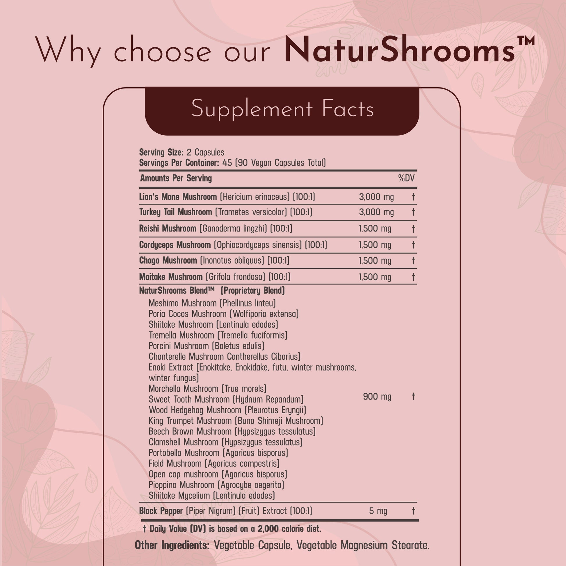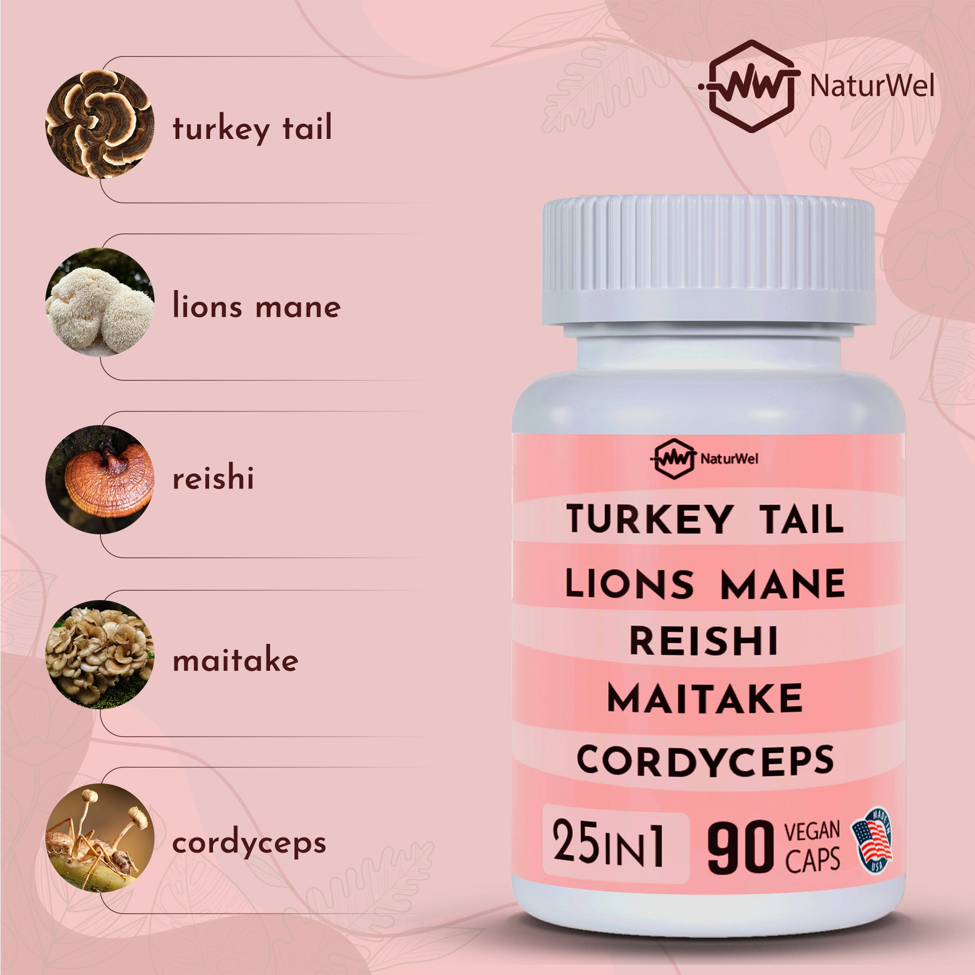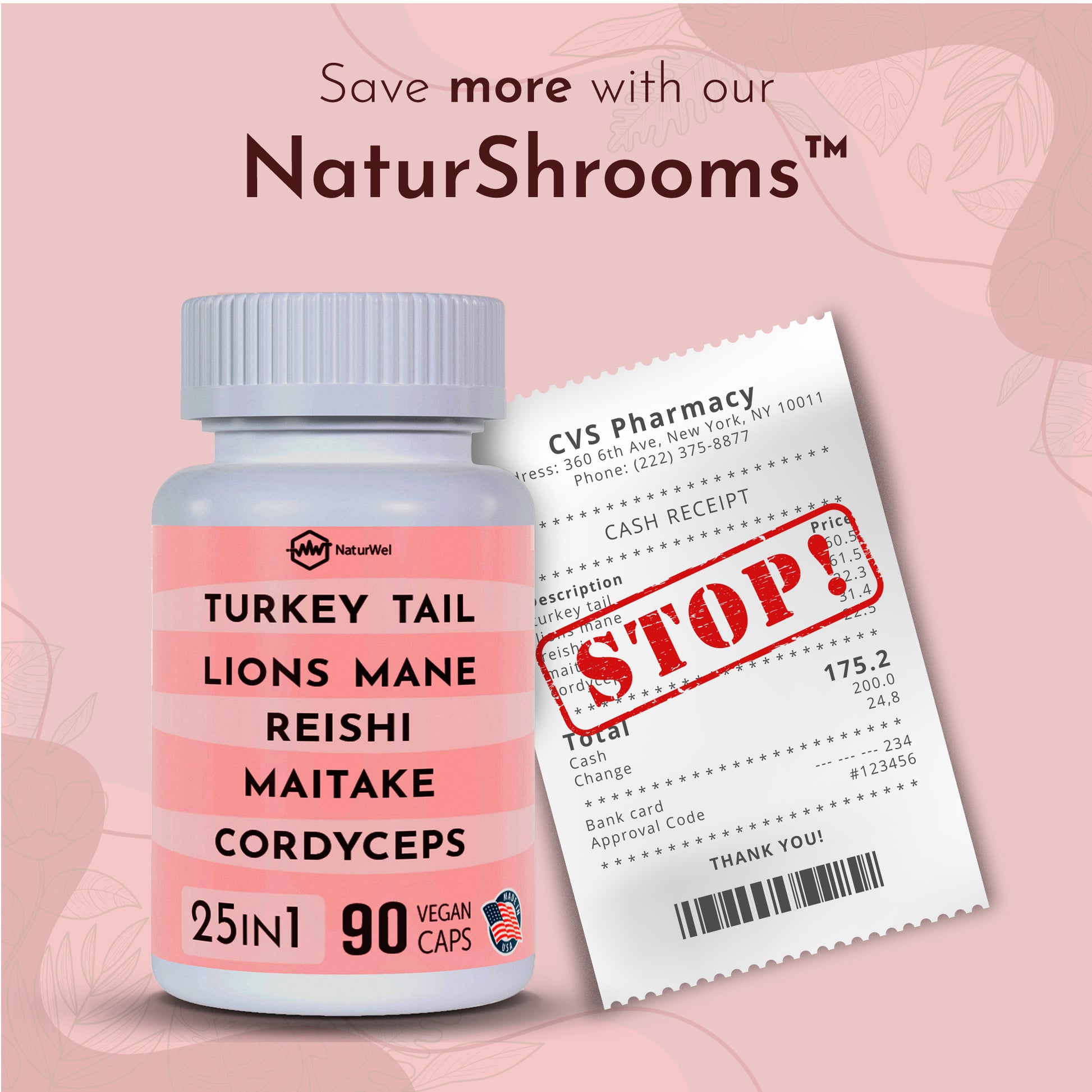 NaturShrooms - 25 in 1 with Turkey Tail,Lions Mane,Reishi & Mushroom Blend